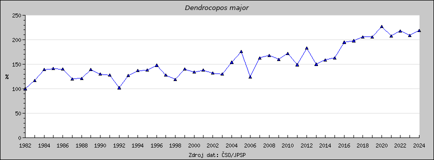 Grafy, které lze prolížet na této stránce, zobrazují druhové indexy, tedy meziroční vývoj početnosti jednotlivých druhů v České republice. Údaje jsou uvedeny v %, přitom výchozí rok 1982 odpovídá vždy 100%.