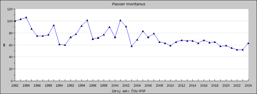 Grafy, které lze prolížet na této stránce, zobrazují druhové indexy, tedy meziroční vývoj početnosti jednotlivých druhů v České republice. Údaje jsou uvedeny v %, přitom výchozí rok 1982 odpovídá vždy 100%.
