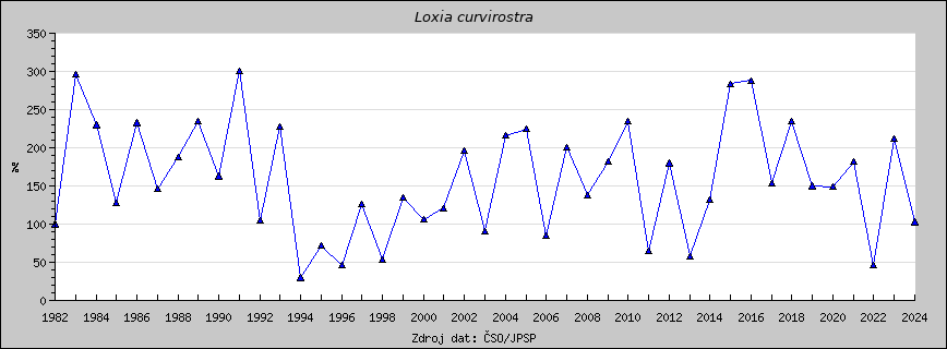 Grafy, které lze prolížet na této stránce, zobrazují druhové indexy, tedy meziroční vývoj početnosti jednotlivých druhů v České republice. Údaje jsou uvedeny v %, přitom výchozí rok 1982 odpovídá vždy 100%.